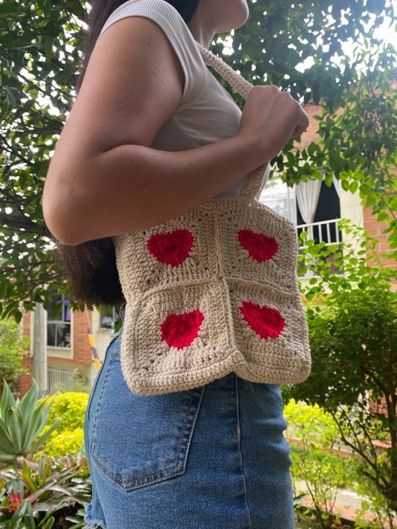 Un bolso de mano pequeño que late con amor en cada detalle. Su diseño cuadrado tejado a mano combina un elegante patrón de cuadros con pequeños corazones rojos que asoman con ternura entre la trama. Elaborado con hilo de calidad, es el complemento perfecto para quienes buscan un accesorio romántico, original y lleno de personalidad, ideal para llevar lo esencial con ese toque dulce que roba miradas.