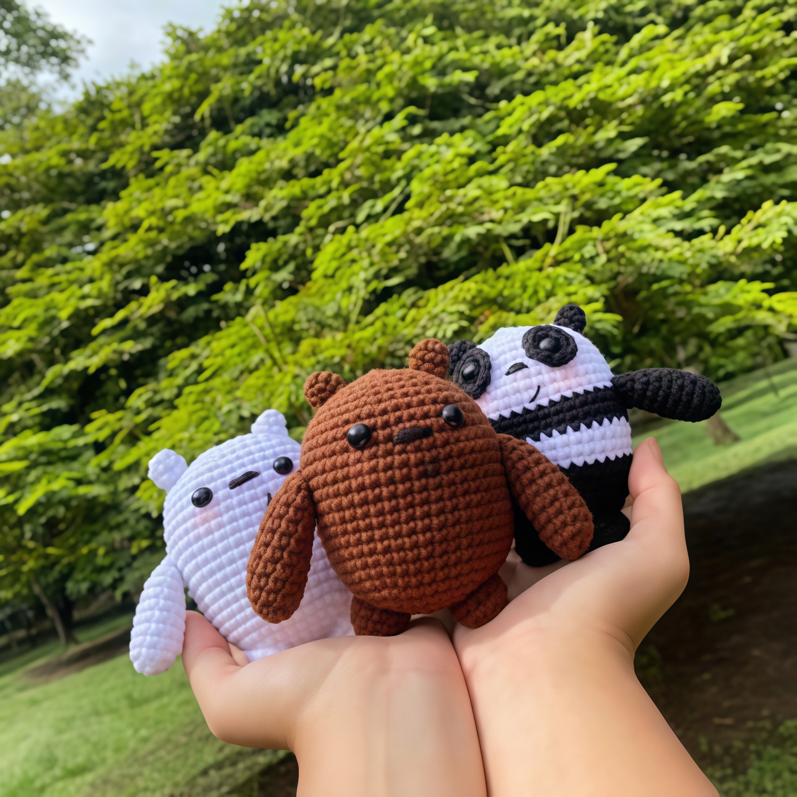 Los tres escandalosos tejados a mano, listos para sembrar el caos más tierno en tu colección. Pardo, Panda y Polar llegan con sus personalidades tan particulares: el alocado, el introvertido y el hábil. Cada uno elaborado con hilo de calidad, capturando sus expresiones únicas y ese aire de desastre adorable que tanto nos gusta. Un trío imprescindible para los fans de la animación, perfecto para revivir las locuras de la cueva o para regalar un pedazo de alegría.